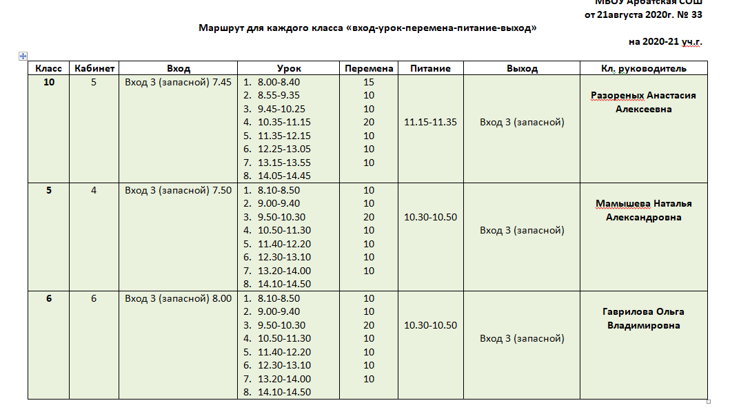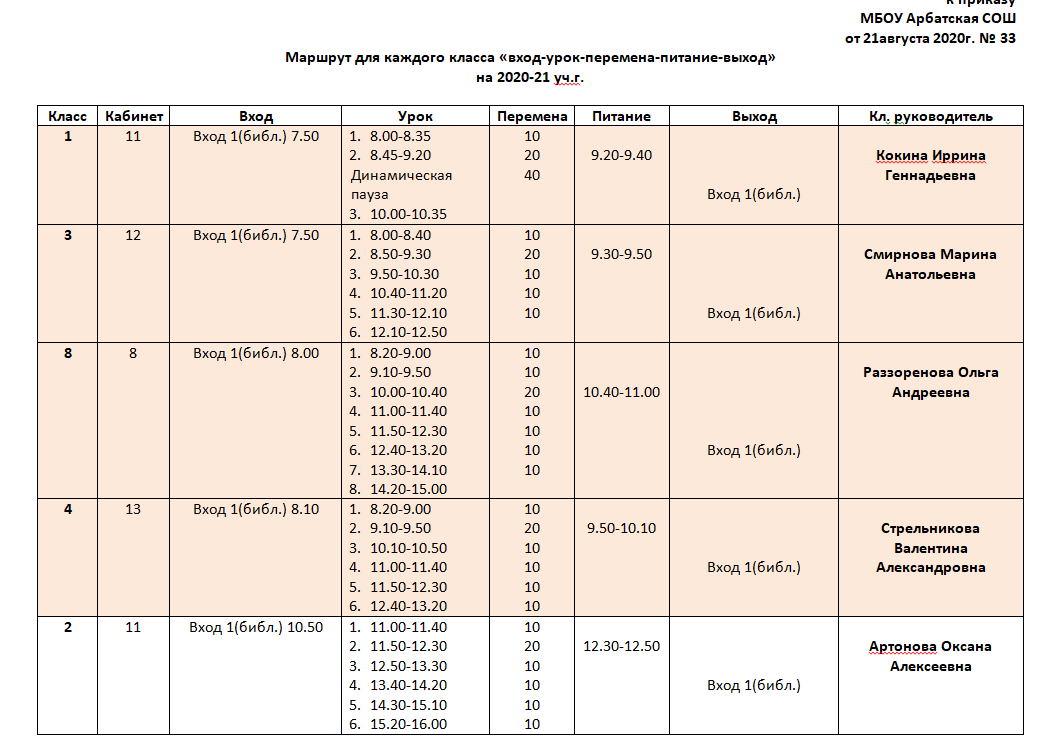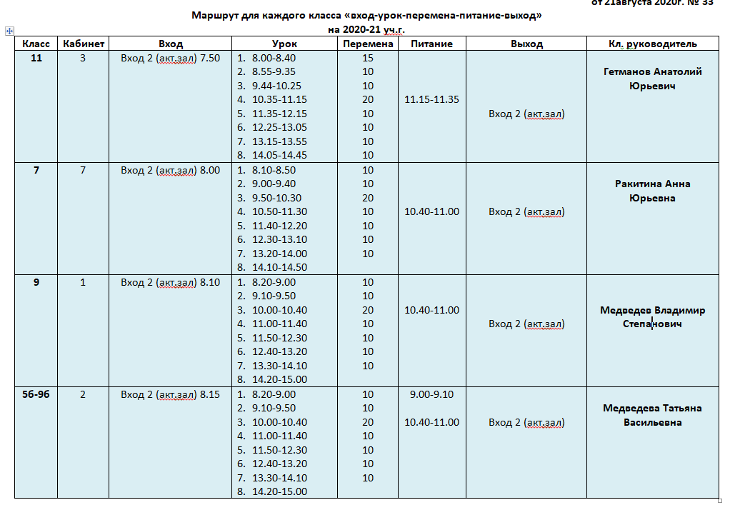 Индивидуальные маршруты для каждого класса «вход-урок-перемена-питание-выход»